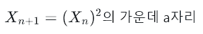 위 식은 폰노이만이 1949년에 제안한 중앙 제곱법의 수식이다. 식을 살펴보면 X0가 시드가 될 것이다.